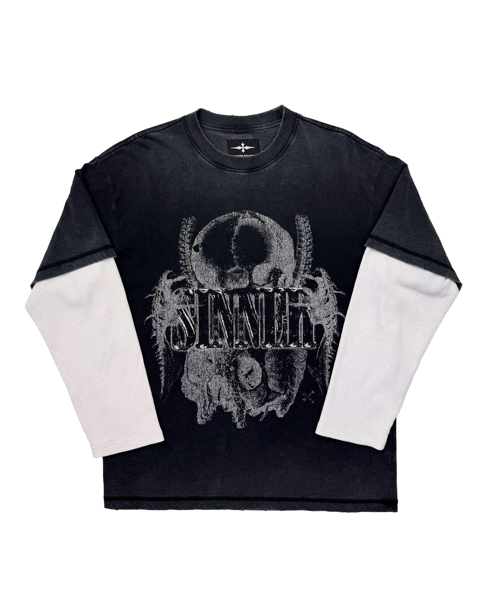 SKULL LAYERED LONG SLEEVE SHIRT